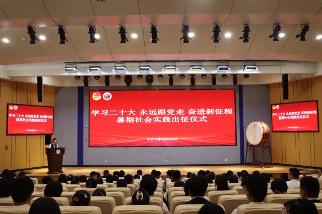 为深入学习贯彻习近平新时代中国特色社会主义思想,全面贯彻落实党的二十大精神,引导和帮助广大学生上好与现实相结合的“大思政课”,在观察实践中坚定信念听党话、跟党走,6月29日下午2:00,我们于图书馆报告厅举行“学习二十大 永远跟党走奋进新征程”2023年暑期社会实践出征仪式,党委委员、副院长李艳出席了本次仪式,学工处、团委负责人,各二级院党总支(副)书记、团总支书记,各实践团队指导老师以及团队成员共109人参加了本次仪式,仪式由学生联合会杨斯琪同学主持。