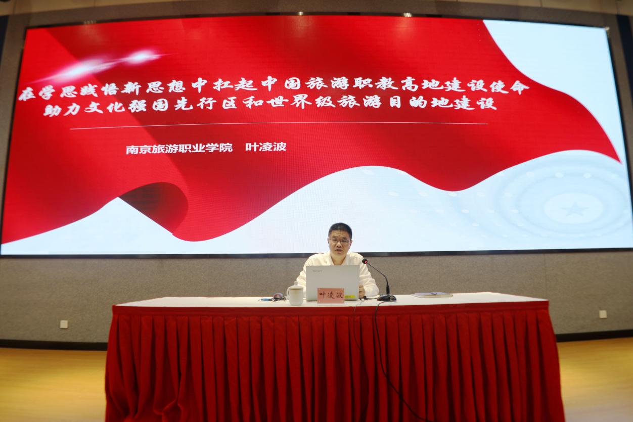 根据学院学习贯彻习近平新时代中国特色社会主义思想主题教育有关工作部署,7月5日下午,学院院长叶凌波讲授题为《在学思践悟新思想中扛起中国旅游职教高地建设使命 助力文化强国先行区和世界级旅游目的地建设》的专题党课,学院在校领导和党员聆听党课。会议由党委副书记、副院长黄斌主持。
