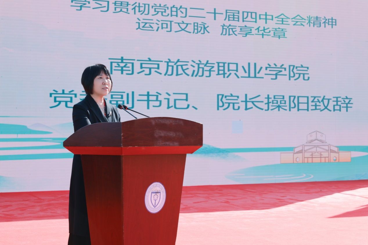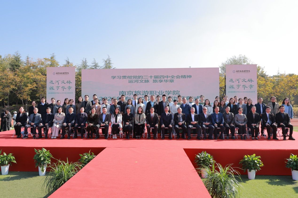 2025年11月5日,学院隆重举办“运河文脉 旅享华章”2025年专业文化艺术节活动。江苏省文化和旅游厅科技教育处副处长胡俊波,学院党委书记叶凌波,党委副书记、院长操阳,中国旅游院校五星联盟、长三角旅游职教联盟成员单位,南京图书馆、南京博物院、扬州中国大运河博物馆等政行校企合作嘉宾出席活动。