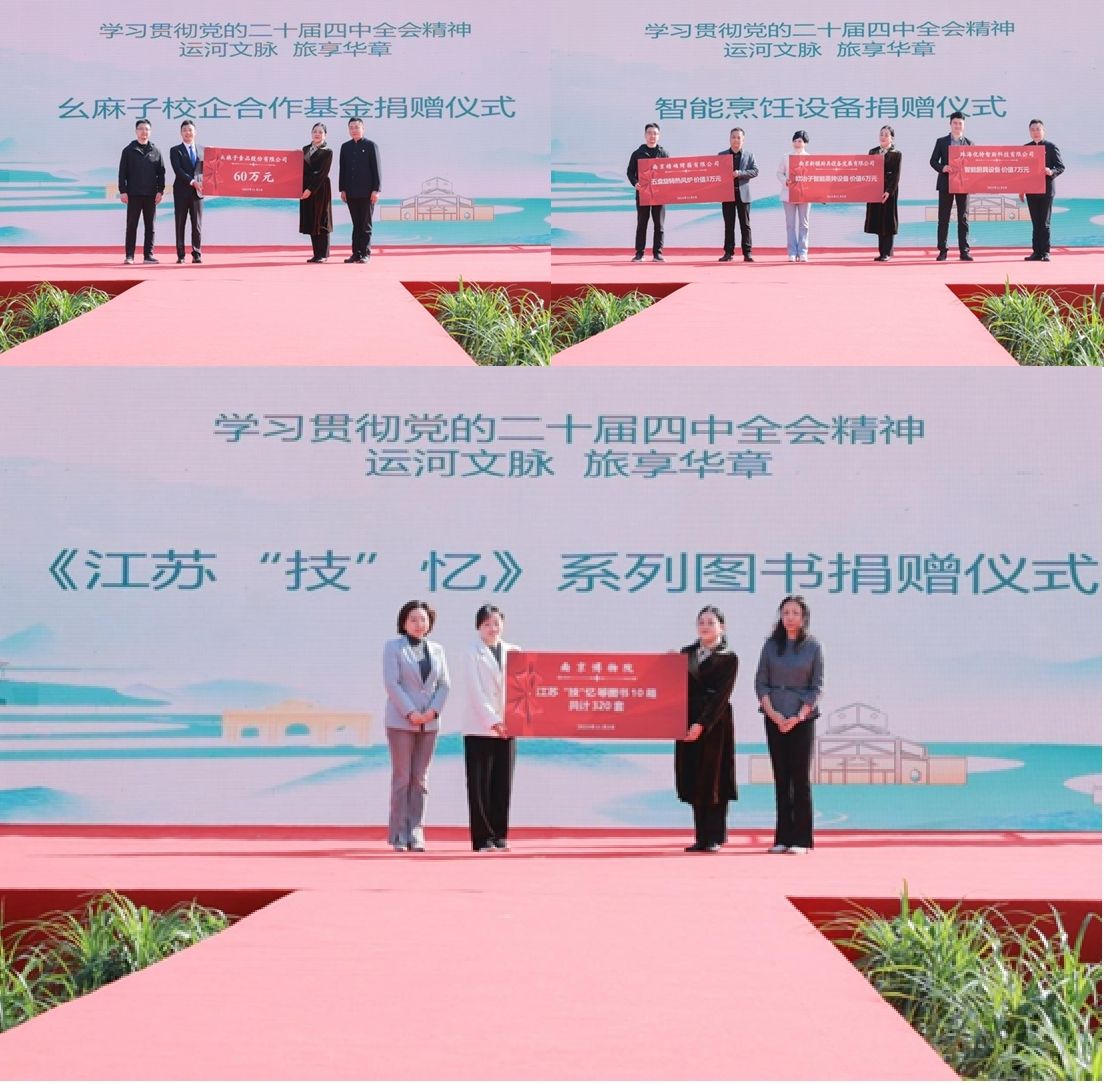 捐赠环节彰显校企协同育人温度。幺麻子食品股份有限公司捐赠60万元支持“智慧餐饮产业学院”建设;优特智厨等3家企业捐赠总价值16万元的智能烹饪设备,助力实训基地建设。南京博物院向人文艺术学院捐赠320套《江苏“技”忆》等图书,为研学教育提供文化支撑。