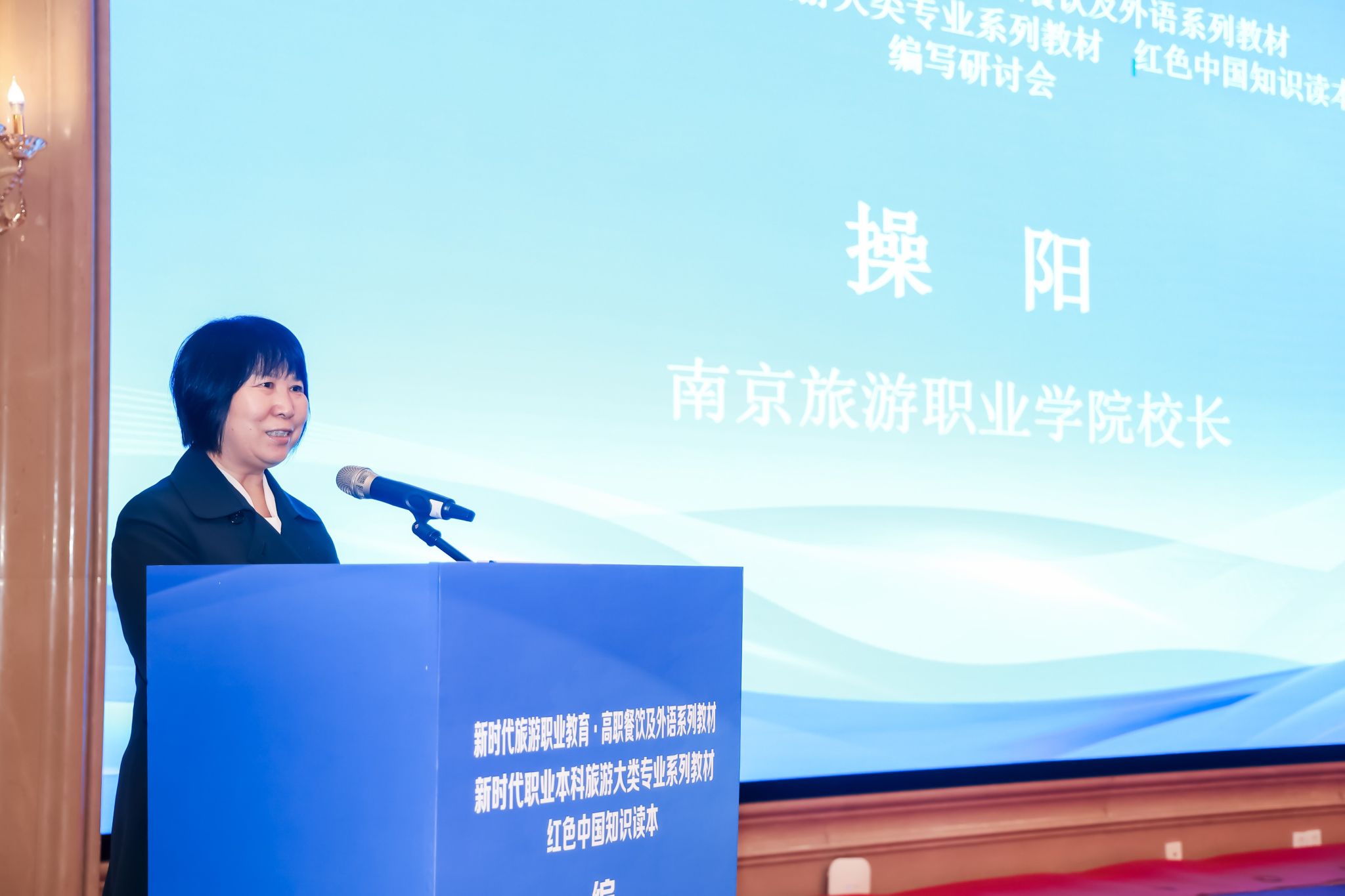 操阳在致辞中指出,文旅产业智慧化、国际化发展的趋势为旅游职业教育教材建设提出了新要求,她分享了我们在教材建设方面的创新举措和丰硕成果,累计入选“十四五”职业教育国家规划教材24部,强调教材编写者必须紧扣时代脉搏、深入产业一线、恪守学术规范,方能打造出经得起检验的高质量教材。