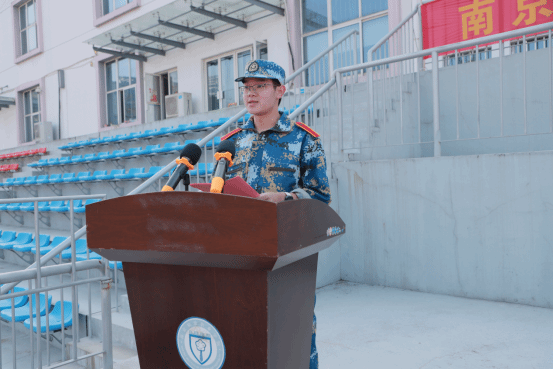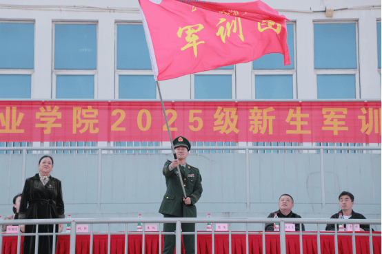 烹饪与营养学院25西式烹饪工艺2班的吴宇森作为新生代表发言,他表示:“将发扬‘精益求精’的工匠精神和‘永不言败’的钢铁意志,刻苦训练、团结协作,递交无愧于时代的青春答卷。”随后,朱琰向军训团授旗,标志着军事技能训练正式启动。