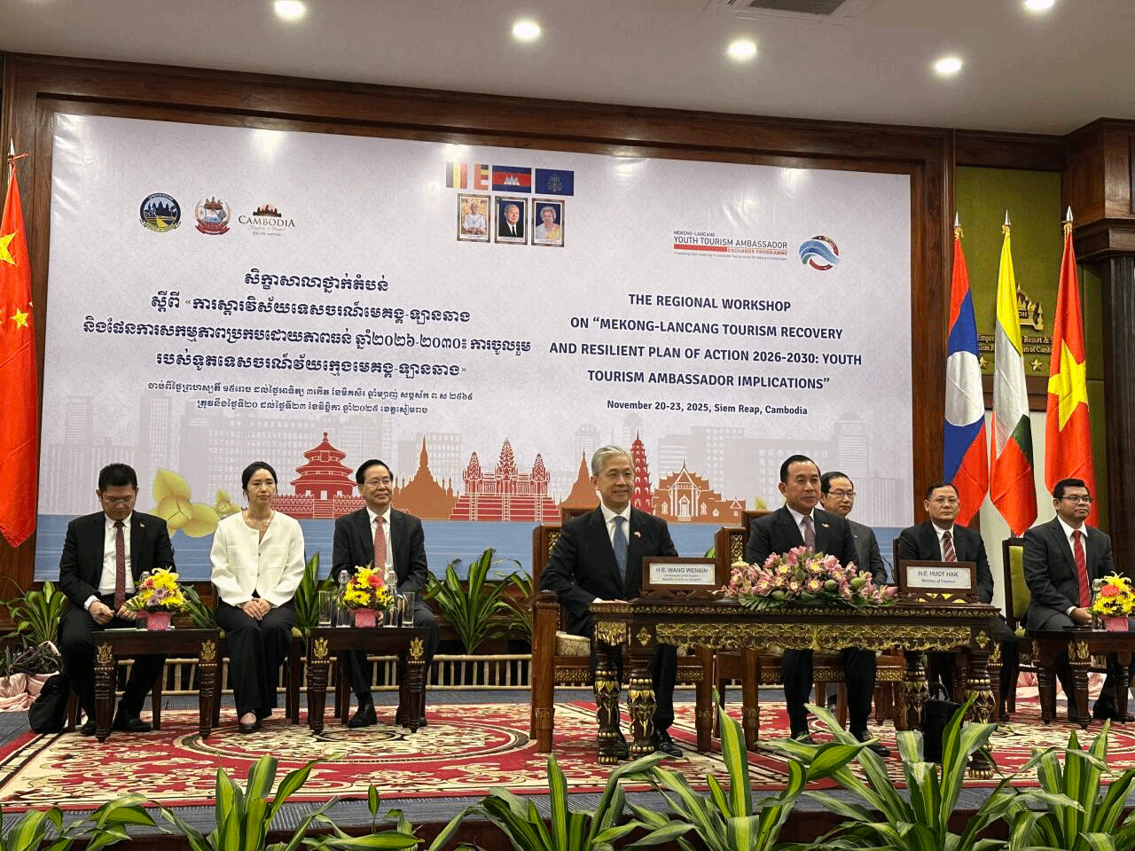近日,由柬埔寨王国旅游部主办的“2026-2030年澜沧江-湄公河旅游复苏与韧性行动计划:青年影响”研讨会在柬埔寨暹粒圆满落幕。伟德国际victor1946旅游管理学院教师葛益娟、24旅游管理5班杜若菲受邀参会,凭借在区域旅游合作与青年人才培养领域的积极探索,柬埔寨旅游部正式授予葛益娟、杜若菲二人“青年旅游大使”称号,为学院赢得了国际赞誉。