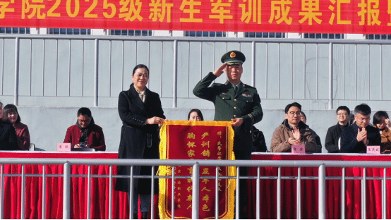 大会中,朱琰代表学院向承训部队赠送了锦旗,张骏宣读了《关于表彰2025级新生军训“先进集体”和“先进个人”的决定》。学院与承训部队领导共同为荣获“军训先进集体”“军训优秀教官”“军训先进工作者”及“军训优秀学员”的代表颁发了荣誉证书。