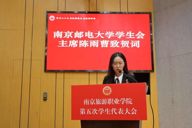 大会在国歌声中开幕。南京邮电大学学生会主席陈雨曹同学代表南邮全体青年对大会的召开表示祝贺,她希望通过这次大会加强与我们学生间的协作与互动,为学生会建设开设新思路、开创新境界。