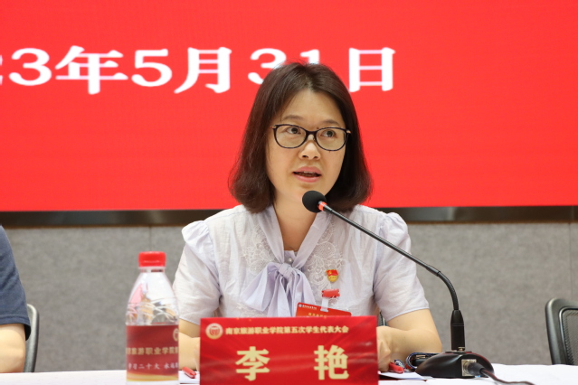 党委委员、副院长李艳讲话。她表示学院学生会过去团结带领青年学生围绕学院中心工作,帮助青年成长进步、服务青年创新争优等方面做出了大量富有成效的工作。同时,对学生会提出了三点期望:一要立宏远之志,做信仰坚定的时代新青年;二要传承红色基因,做社会建设的青年生力军;三要勇于创新创造,做敢为人先的时代开拓者。