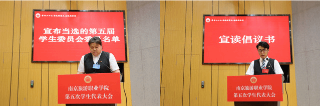 大会审议并通过了《第四届学生联合会委员会工作报告》和《学院第五次学生代表大会提案工作报告》,根据选举办法的各项要求,以无记名的投票方式选举产生了新一届学生委员会、学生会主席团、常任代表委员的名单。由唐欣锜同学代表新一届学生联合会宣读倡议书,完成了大会既定的各项任务。
