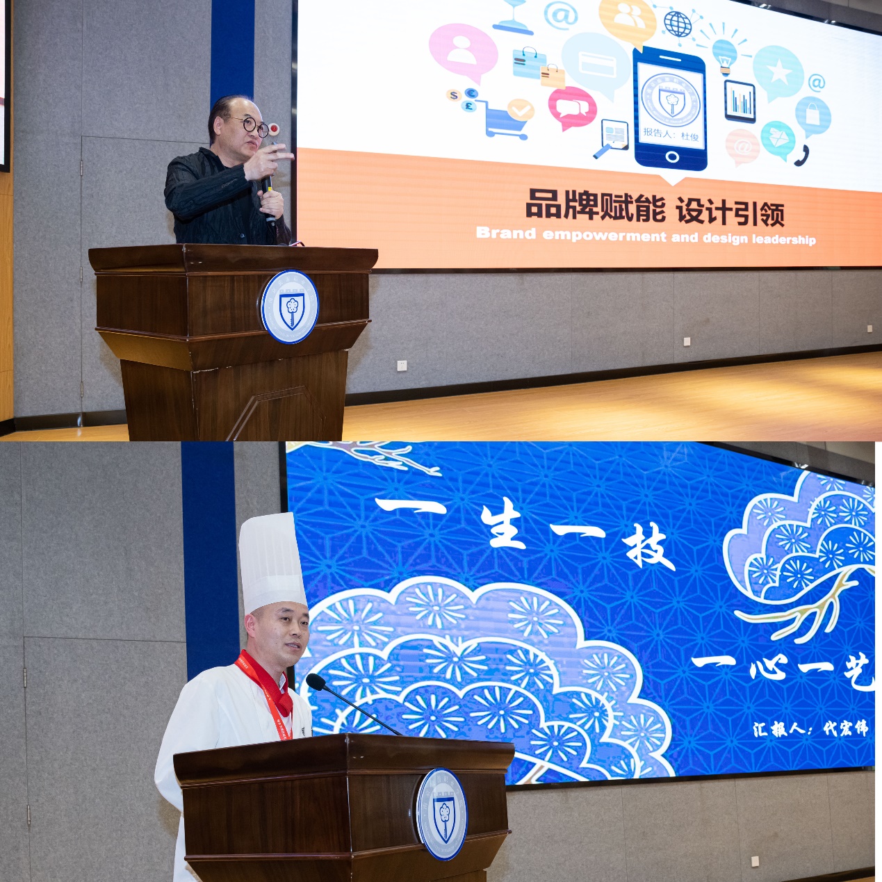 接着,开展的是“劳模工匠大师进校园活动”,技能大师、江苏鼎艺国际文化创意产业有限公司董事长兼CEO杜俊先生以“品牌赋能 设计引领”为主题,从品牌定义、品牌价值、品牌影响力、品牌强度四个方面,介绍了他塑造的文旅品牌及创新案例。南京市劳动模范代宏伟进行了题为“一生一技 一心一艺”的分享交流,精彩诠释了以勤奋、创新、传承为中心的工匠精神。