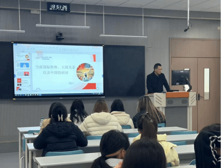 院党委书记叶凌波以《当前国际形势、大国关系以及中国的应对》为主题,为25会展策划与管理1班、25空中乘务1班讲授了形势与政策课。课上,叶凌波结合当前国际形势的热点问题,重点围绕特朗普新一届政府以来中美战略博弈新动态,深入分析了中美在经贸、科技、地缘政治等领域的竞争与博弈态势,引导同学们面对纷繁复杂的国际环境,应保持理性思考,增强国家安全意识,自觉维护国家利益,努力将个人发展融入国家发展大局之中,为实现中华民族伟大复兴贡献力量。