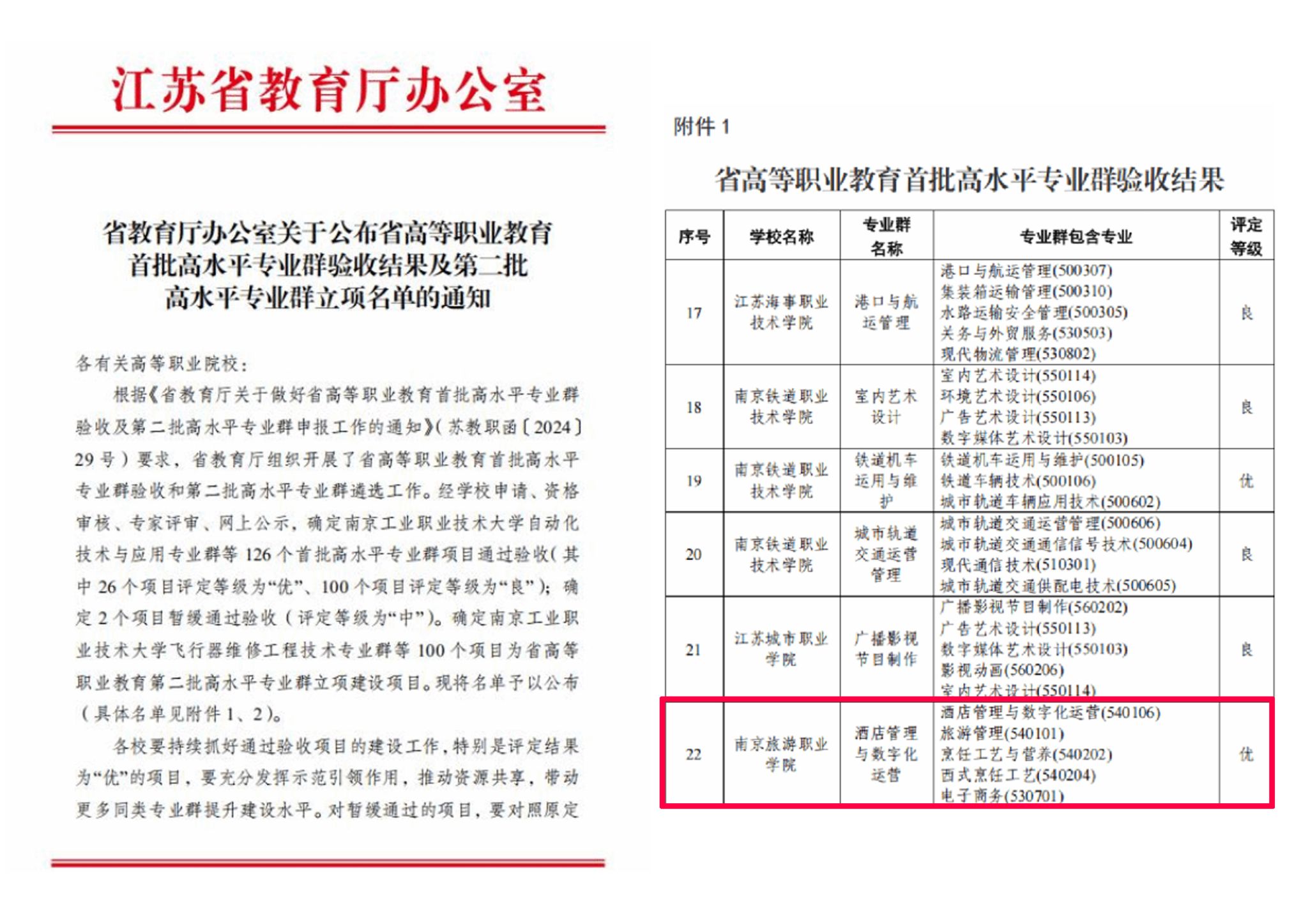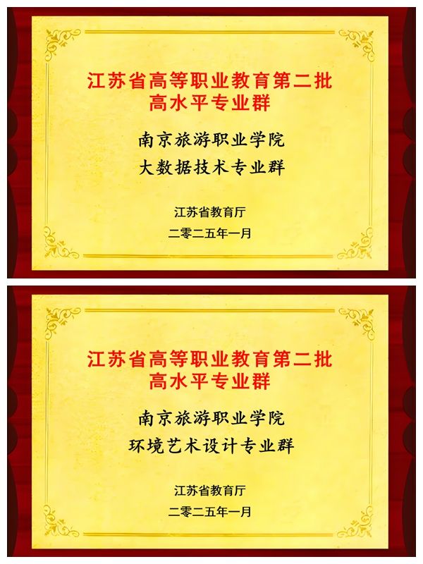 酒店管理与数字化运营专业群以“优秀”等级通过省首批高水平专业群验收(全省仅26个项目为“优秀”)。大数据技术专业群和环境艺术设计专业群成功获批为省级第二批高水平专业群建设立项。酒店管理与数字化运营专业顺利通过省“十四五”高校国际化人才培养品牌专业验收。精准布局人工智能应用、智能生态与农业、数字营销、生命健康、文化旅游等前沿领域,5个微专业入选教育部“双千”计划首批项目。新获批与南京工业职业技术大学合作的高职与本科“3+2”分段培养项目1项,学院“3+2”项目总数已达9项,在全省高职专科院校中居于首位。教学资源质量实现新跨越,3部教材荣获全国教材建设奖二等奖,3部教材入选第二批“十四五”职业教育国家规划教材,均位居同类院校之首。