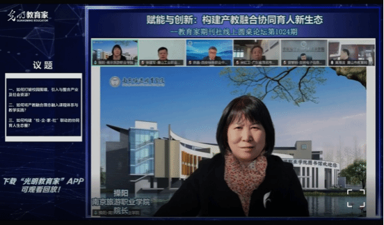 1月14日,学院党委副书记、院长操阳受邀参加光明日报《教育家》杂志线上圆桌论坛并作专题分享,与来自浙江、江苏、云南、辽宁、陕西等地职业院校的书记、校长共聚云端,围绕“赋能与创新:构建产教融合协同育人新生态”展开深入交流。