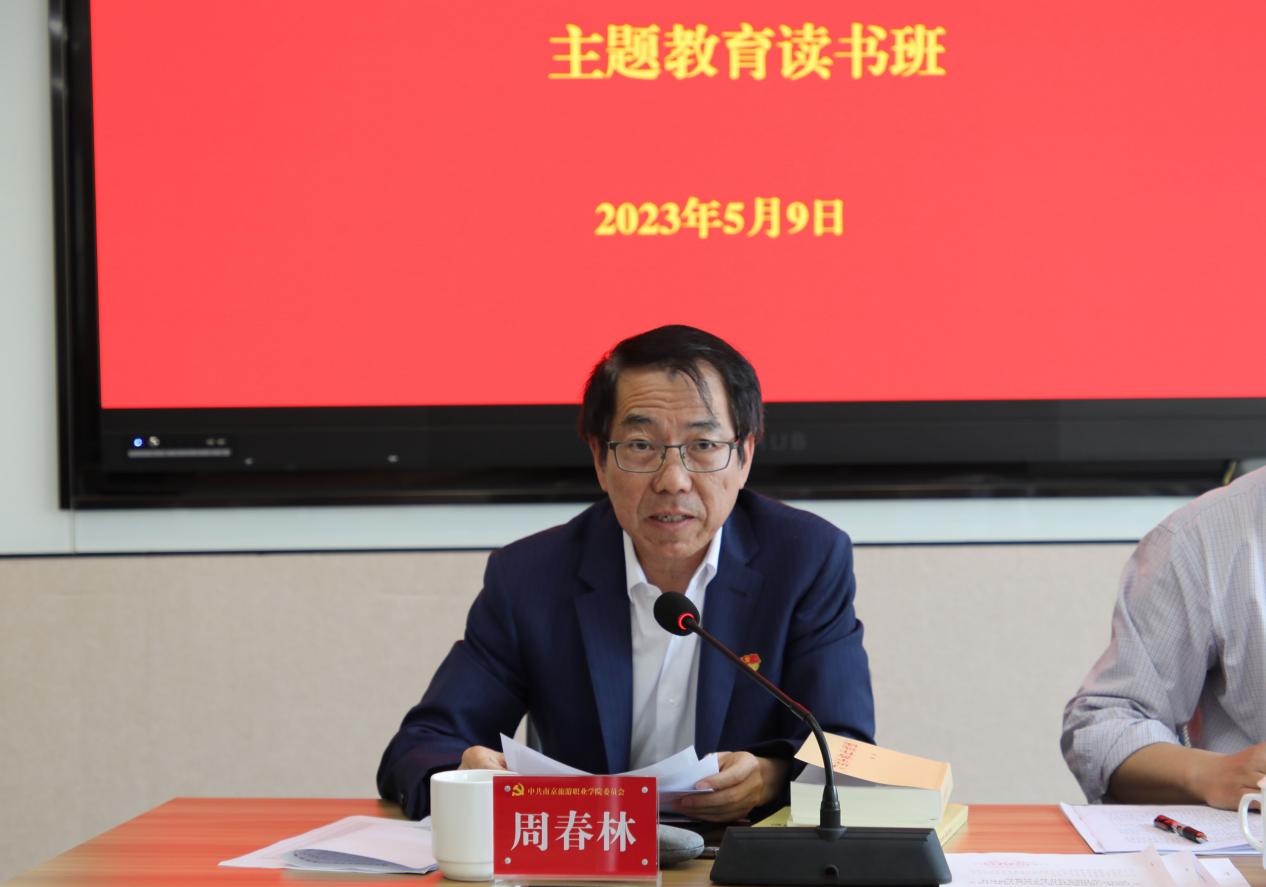 党委书记周春林在讲话中结合建设社会主义意识形态和讲好中国故事,谈了个人学习体会。他指出,意识形态在一定程度上决定了一个社会发展的方向和目标,要充分认识到意识形态工作的极端重要性。要建设好社会主义意识形态,一是要切实加强思政课程和课程思政建设,广泛开展形式多样富有创新的思想政治教育活动,抓实教职工的政治理论学习和青年大学习;二是要强化社会主义核心价值观的教育,让广大师生员工深刻理解、认同和践行社会主义核心价值观;三是要深入推进校园文化建设,提高文化创新能力,讲好中国故事、江苏故事和南旅故事,为社会主义意识形态建设提供坚实文化支撑;四是充分发挥新媒体作用,加强网络舆论引导,建设清朗网络空间,推动社会主义意识形态在网络空间的传播和引领;五是加强青年学生的教育,引导他们坚定对马克思主义的信仰、对中国特色社会主义的信念、对实现中华民族伟大复兴中国梦的信心,做德智体美劳全面发展的社会主义建设者和接班人。讲话中,周春林与全体读书班成员分享了中山大学旅游学院与云南元阳县人民政府深度合作为阿者科村量身定制的旅游减贫项目——“阿者科计划”,他指出,习近平总书记在主题教育工作会议上强调,主题教育要在推动学习贯彻习近平新时代中国特色社会主义思想走深走实上下功夫,努力在以学铸魂、以学增智、以学正风、以学促干方面取得实实在在的成效,以“阿者科计划”为例分享旅游扶贫、建设美丽乡村与讲好中国故事、传播中国文化的经验做法,希望读书班学员都能把学习和实践结合起来,与人才培养结合起来,与弘扬先进文化结合起来,与服务社会、服务人民结合起来,学思践悟,推动主题教育深化、内化和转化。