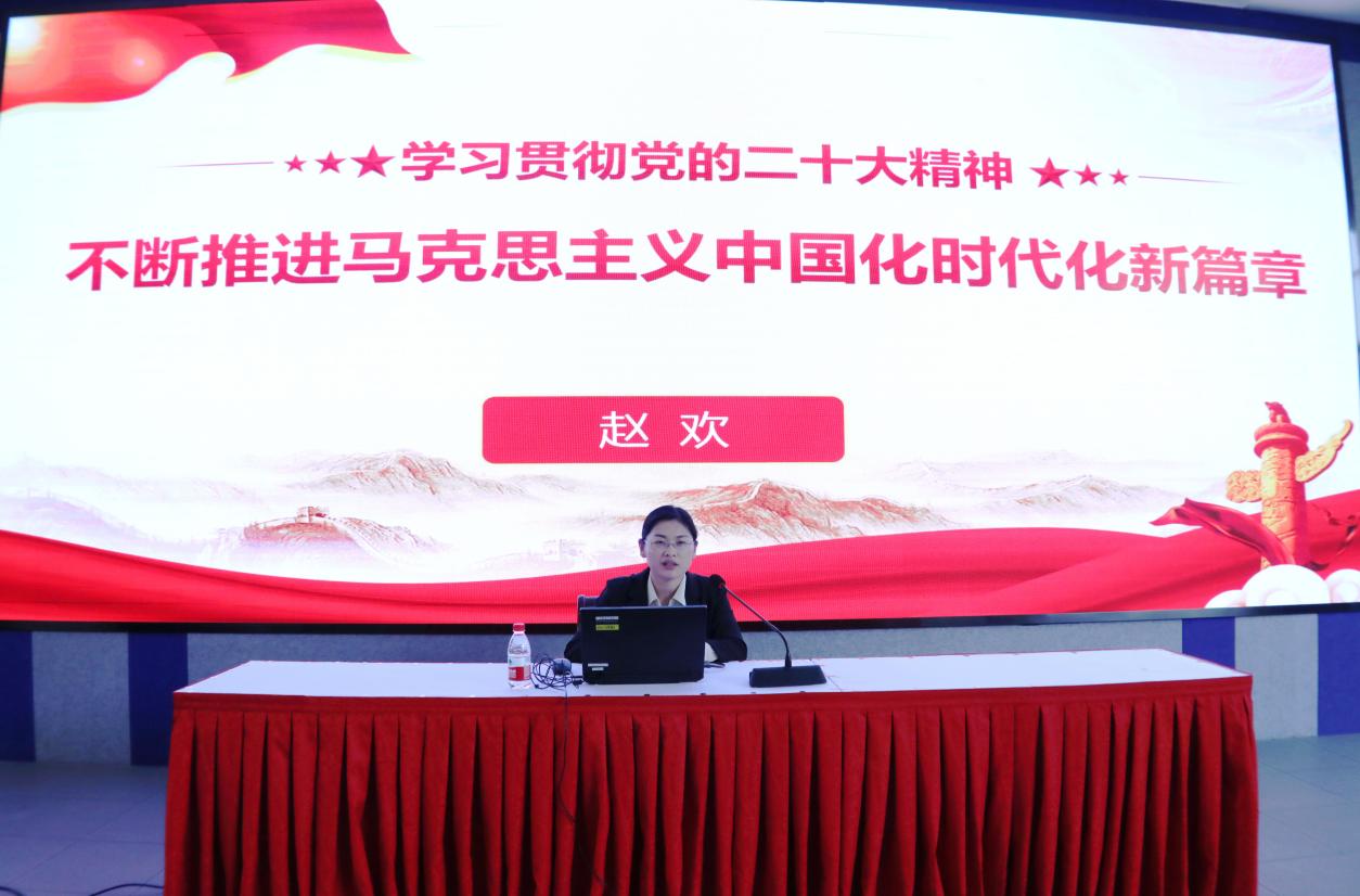 开班仪式上,马克思主义学院形势与政策教研室主任赵欢作了题为《不断推进马克思主义中国化时代化新篇章》的专题授课。