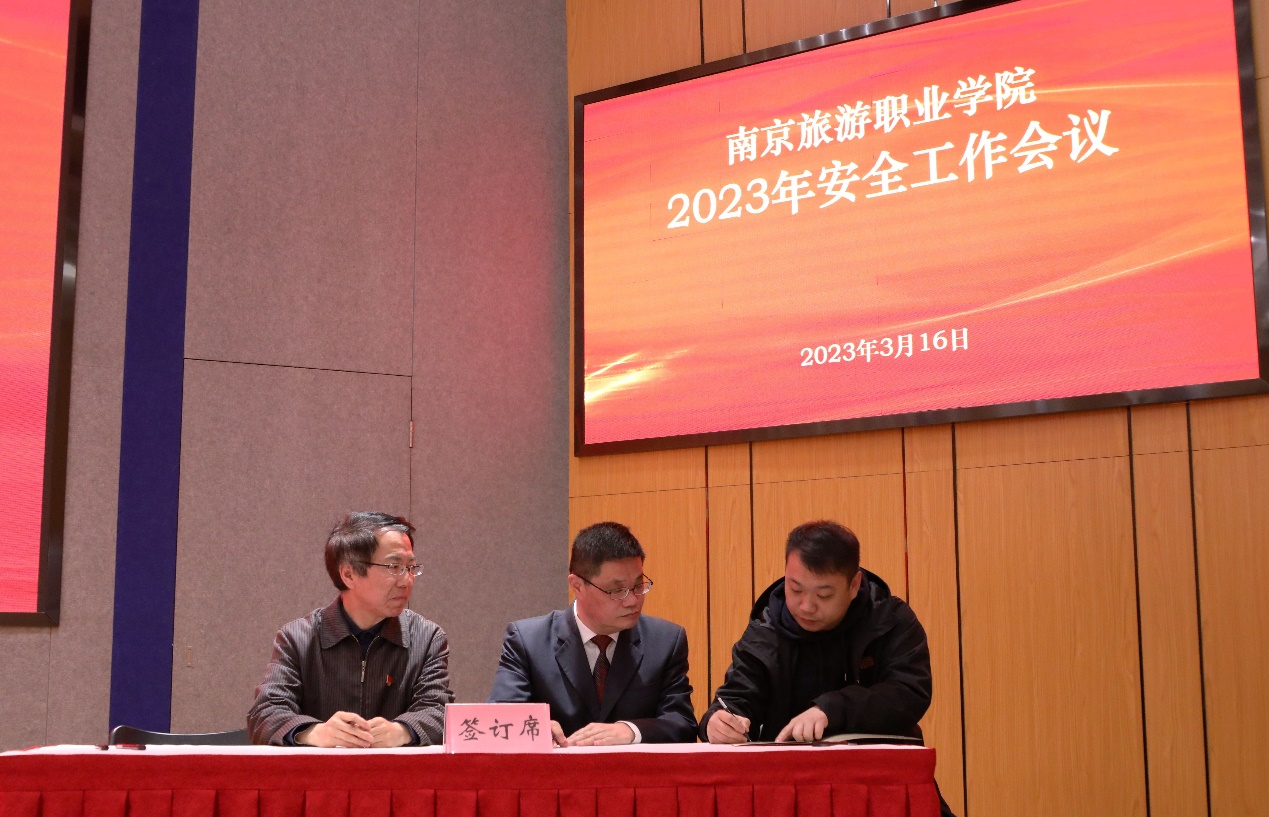党委书记周春林,党委副书记、院长叶凌波与处室、院(部)党政负责人代表签订《2023年安全稳定工作责任书》。