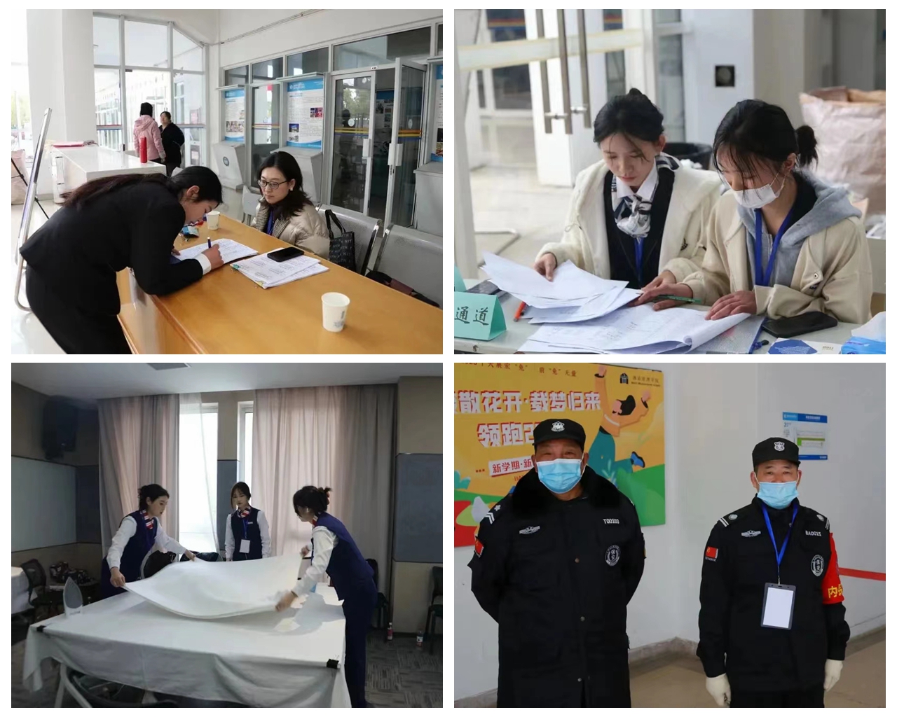 学院高度重视考试工作,成立了联考指导委员会、考务工作组、考务办公室和应急处理办公室,制定了考试工作手册。在教务处的精心组织下,招生就业处、学生工作处、信息化管理处、后勤管理处、保卫处、宣传部和酒店管理学院、旅游管理学院、人文艺术学院、基础部等院部通力配合,确保考试有序进行。中职职教高考还专门成立卫生防疫、后勤保障组,设立考务医务室,提前做好考场清洁卫生防疫等工作,同时,与驻地医疗机构建立联动机制,及时处理可能发生的突发事件。