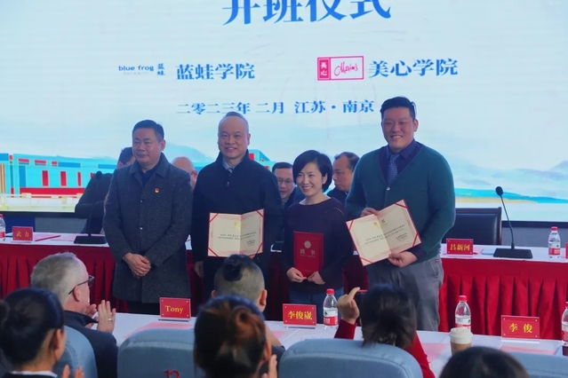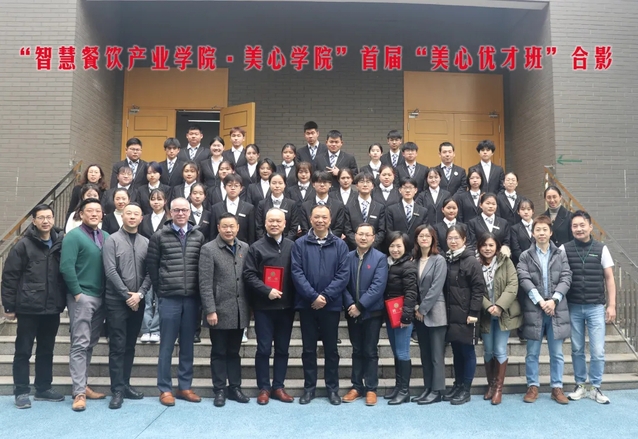 2月24日上午,2023伟德国际victor1946“智慧餐饮产业学院·蓝蛙学院” 和“智慧餐饮产业学院·美心学院”首届“蓝蛙精英班”和“美心优才班”开班仪式在教学楼报告厅隆重举行。