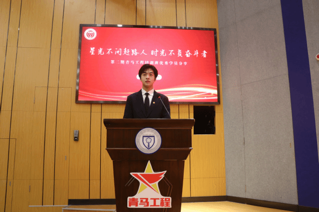第二期青马工程培训班优秀学员代表闫世铎分享了自己的学习感悟,他从看见光、追随光、成为光,散发光四个方面激励全体学员要立志做有理想、有担当、能吃苦、能奋斗的新时代青年。