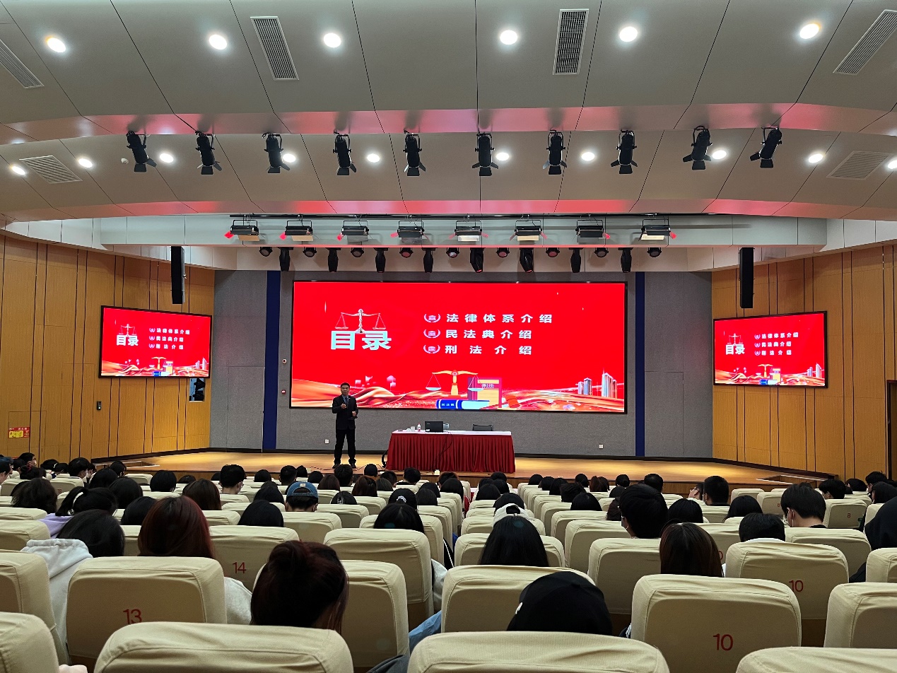 为进一步增强学生的法治意识和安全防范能力,引导师生自觉履行义务,营造知法、守法、学法、用法的良好氛围,10月27日下午,保卫处和学生工作处在图书馆报告厅联合开展了大学生普法宣传教育活动,特邀国浩律师(南京)事务所刘绍奎律师进行法制教育专题讲座。保卫处、学工处同志,各二级学院辅导员、学生300余人参加了讲座。讲座由党委委员、保卫处处长汪亮主持。