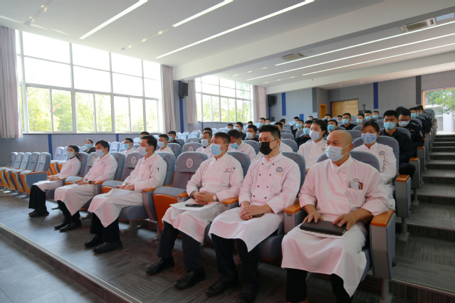 烹饪与营养学院吕新河院长对本次培训提出具体要求,他指出本次培训计划20天,为确保培训质量和效果,我们依据现代警营饮食文化理念,结合江苏边检总站的实际需求,科学制定教学计划,邀请资深烹饪专家为学员授课,课程兼顾针对性和实用性,理论讲解、现场教学与实践操作相结合,让学员们切身体会现代化烹饪流程,学习先进的烹饪经验和技术,全面提升后勤标准化、规范化、精细化建设水平。他强调,本次培训时间紧、内容多、任务重,希望学员们要端正态度、服从安排,认真完成学习培训的各项任务,确保培训成果扎实有效。