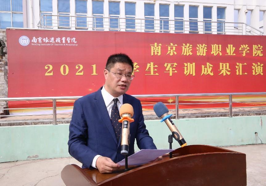 军训成果汇报结束后,叶凌波院长在讲话中代表学院向辛勤承训、无私奉献的武警江苏总队机动支队的教官们致以最崇高的敬意,向坚守岗位、贴心陪伴的辅导员老师们表示最诚挚的感谢,向完成本次军训的全体2021级同学表示热烈的祝贺!他希望同学们在接下来的大学生活和学习中,继续保持和发扬军训期间养成的好作风和好习惯,秉承校训精神,牢记时代使命,不忘求学初心,为报效伟大祖国、书写美好人生积蓄前进的力量。