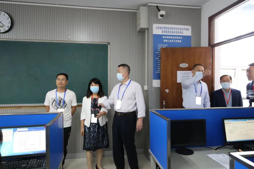 南京市社会教育考试院院长周俊、副院长欧文剑、科长李元红一行在我们副院长操阳、教务处处长孙爱民的陪同下对考场的组织领导、考试流程、考场安排、考务管理、疫情防控等进行了全面巡视,对我们严密规范的考务工作和考务人员认真负责的工作态度给予了充分肯定。