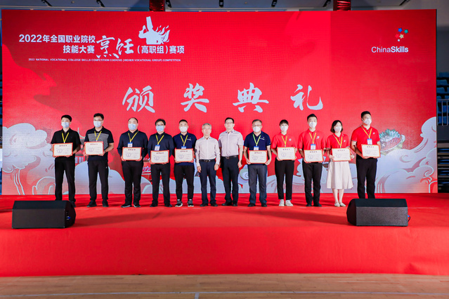 全国职业院校技能大赛是由教育部发起并牵头,联合相关部门、行业组织和地方共同举办的一项公益性、全国性职业院校师生综合技能竞赛活动。烹饪赛项由宴席设计书、规定中餐热菜制作、规定西餐热菜制作、整体宴席制作、宴席展示、答辩与陈述等环节组成,来自全国50支代表队200名选手参加了此次比赛。
