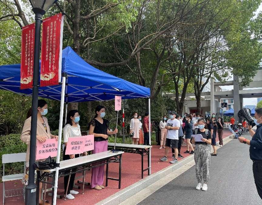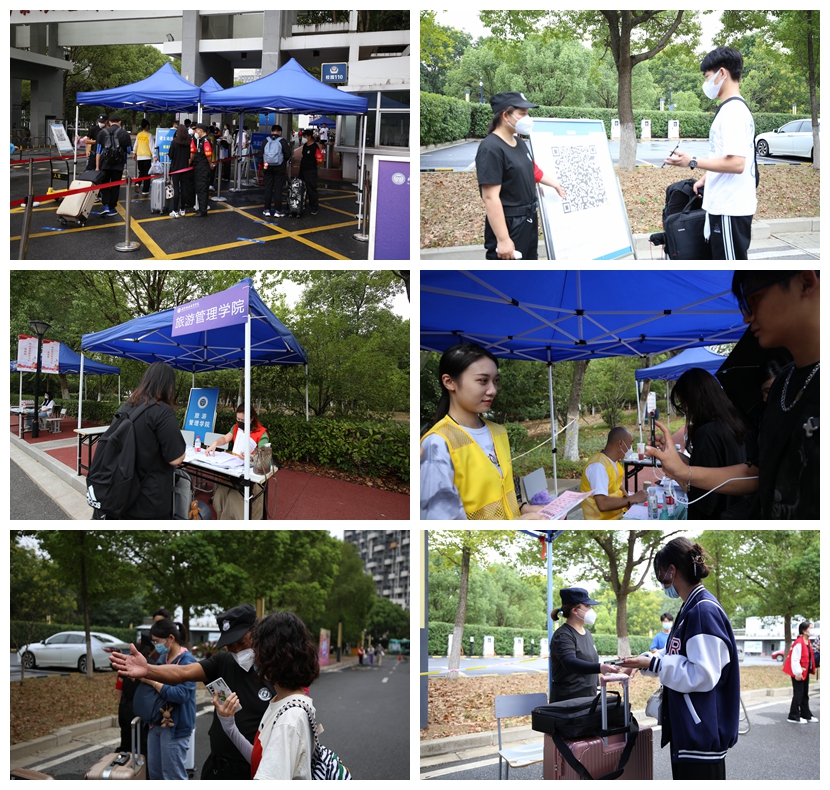 在校门口,学院为同学们平安返校做了充分准备和悉心安排,同学们经过扫描核验健康码、测温、身份验证、消杀的流程进入校园;工作人员耐心细致,现场井然有序。