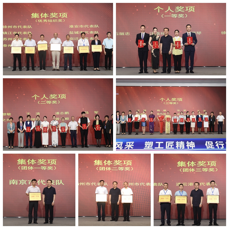 颁奖仪式在我们师生和获奖选手带来的《青水朱袖看江南》节目中拉开帷幕,省文化和旅游厅党组书记、厅长杨志纯代表竞赛组委会向获奖选手和团体表示祝贺,向给予关心指导的文旅部市场管理司以及教练员、裁判员、志愿者表示感谢。他表示通过这次竞赛,必将引导和推动全省星级饭店更加重视服务品牌打造,更加重视从业人员素质技能提升,以高品质服务展形象、促发展。他同时希望全省星级饭店要更加注重品质发展、融合发展、创新发展,以更饱满的热情、更坚定的信心,积极投身文旅高质量发展的创新实践,为助力文旅市场加快全面复苏、打响“水韵江苏”文旅品牌、建设世界重要旅游目的地贡献力量。