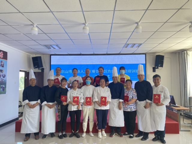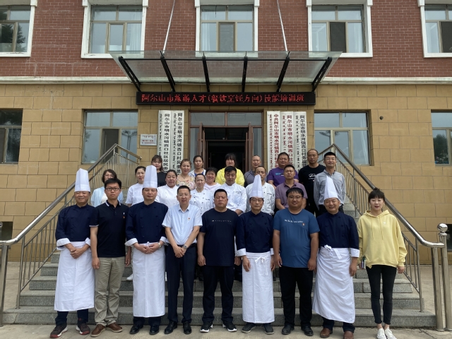 为喜迎党的二十大胜利召开,扎实巩固脱贫攻坚成果,助力乡村振兴,充分发挥教育培训在乡村振兴中的帮扶作用,由文化和旅游部科技教育司指导、阿尔山市委组织部和乡村振兴局主办的京蒙协作项目“阿尔山市旅游人才(餐饮烹饪方向)技能培训班”在明水河镇西口村开班,我们史红根、张荣春、端尧生、陶宗虎等四位国家级烹饪大师远赴阿尔山市送教上门,阿尔山市30余名餐饮人才参加了此次培训。