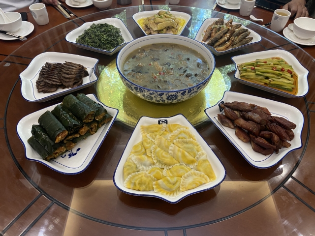 本次培训主要对内蒙古东部牧区特色的菜品----“西口十八碗”进行改良升级。丰富饮食内容,围绕东北农区黑土味道、大兴安岭林区山野味道、内蒙古牧区草原味道重点推出了山珍佛跳墙、福禄寿喜、金丝万缕等扛鼎之作。优化餐具设计,采用蓝、白色为主,赋予地域美学元素,增加阿尔山杜鹃花图案,突出独特性。挖掘文化内涵,借鉴《敕勒歌》“天似穹庐,笼盖四野”寓意,方中带圆,圆中见方,将古典“天圆地方”韵味引用到每寸空间。
