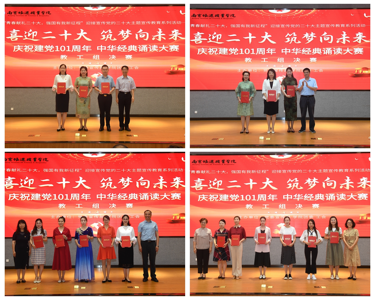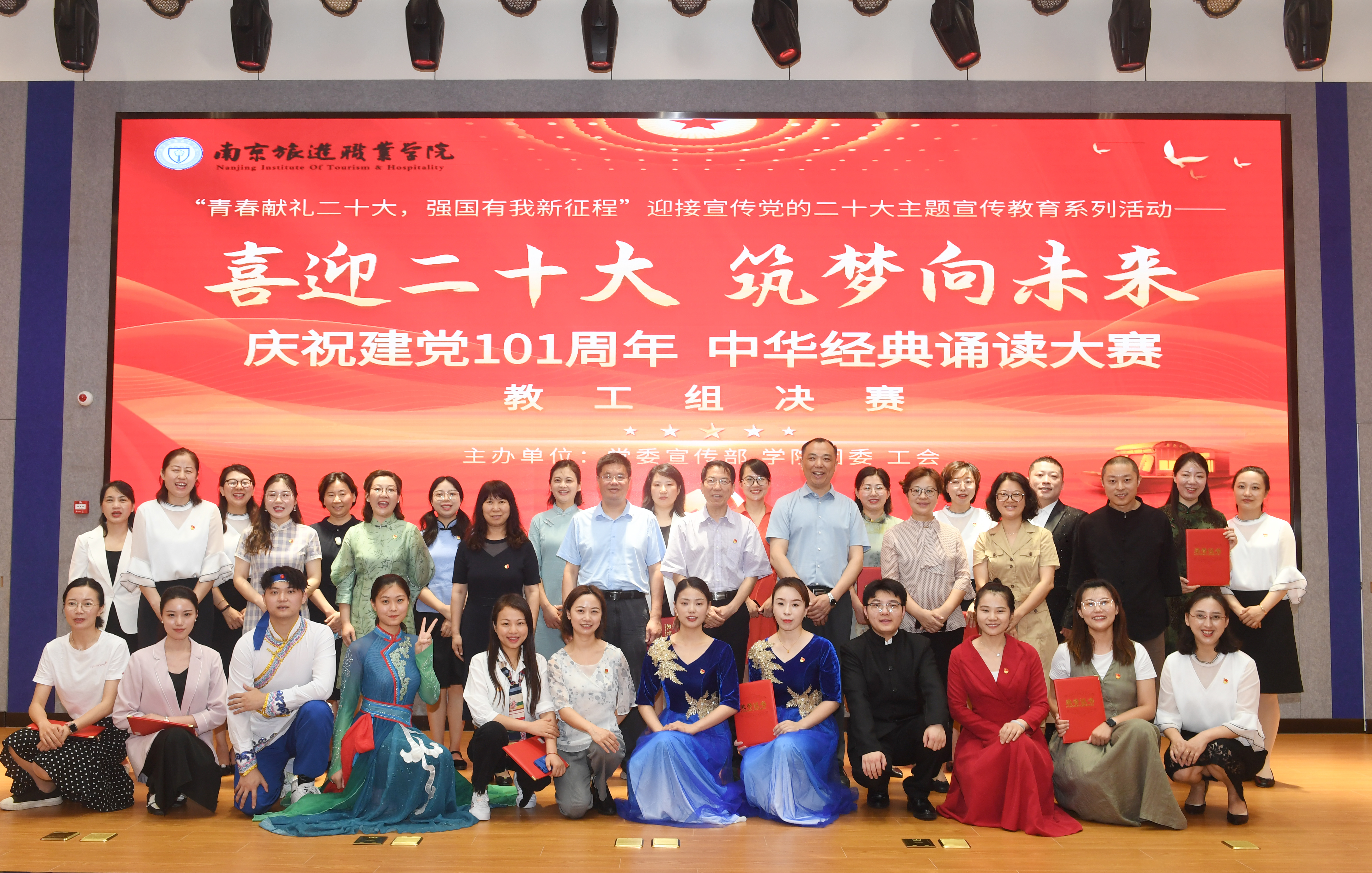 “一条游船,劈开了南湖的波浪,十几个热血青年,在运筹一个红色的理想……”为庆祝中国共产党成立101周年,传承中华优秀传统文化,厚植爱党爱国情怀,6月20日上午,伟德国际victor1946“喜迎二十大筑梦向未来”庆祝建党101周年中华经典诵读大赛(教工组)在图书馆报告厅成功举办,来自全院的8组选手以或抒情、或激昂、或豪迈的诵读,展现了中国语言文字音韵之美,也呈现出南旅院教职工的满腔豪情。学院党委书记周春林,党委副书记、院长叶凌波,党委副书记、副院长黄斌,副院长操阳,副院长洪涛,副院长李艳及专任教师、行政部门全体党员参加活动。活动由团委副书记鲁晨阳主持。