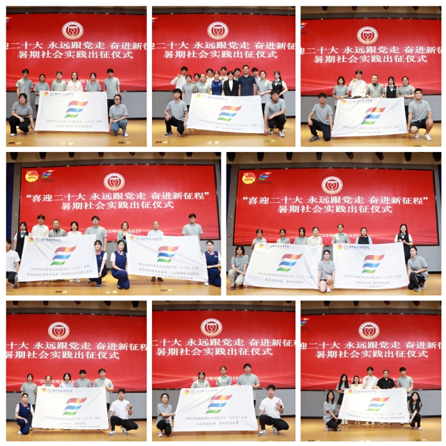6月15日下午3:30,我们于图书馆报告厅举行“喜迎二十大、永远跟党走、奋进新征程”2022年暑期社会实践出征仪式,党委书记周春林,党委委员、副院长李艳出席,团委副书记鲁晨阳,学工处副处长杜文文,各二级学院党总支(副)书记、团总支书记、各团队指导老师以及71名学生代表参加了本次活动,出征仪式由团委副书记沙成金主持。