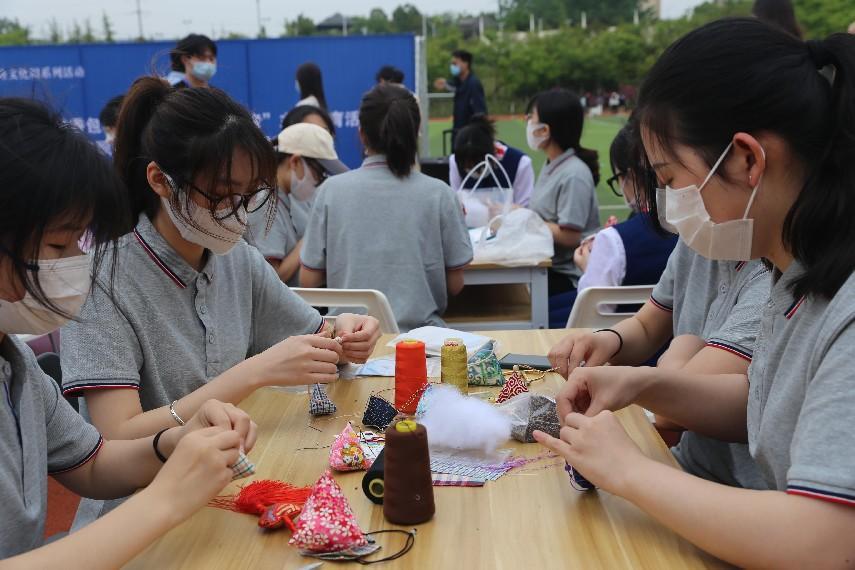 人文艺术学院结合专业特色,组织工艺美术品设计、环境艺术设计等专业的学生与在场的老师们共同制作香包。来自人文艺术学院的徐丹老师围绕徐州香包的历史、制作工艺等进行了现场讲解。活动现场,旅游管理学院还组织师生现场展示了插花工艺品的制作技艺。
