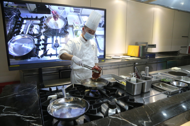 活动的最后,由西式烹饪工艺专业李洋老师在“数字化烹饪教学示范基地”开展了现场教学演示与讲解,带领大家一起体验云端课堂烹饪教学的魅力。