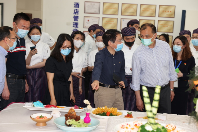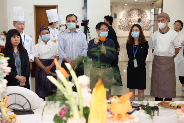 伟德国际victor1946党委书记周春林,院长叶凌波,党委副书记、副院长黄斌,副院长操阳,副院长李艳及教务处等部门领导老师到现场观看了比赛展出作品,对同学们充分发挥想象力和创造力,用菜品设计的方式表达对抗疫精神的赞美给予了高度肯定,也提出了殷切希望,希望大家继续努力提升专业技能,夯实专业基础,在今后的学习中继续努力,再创佳绩。