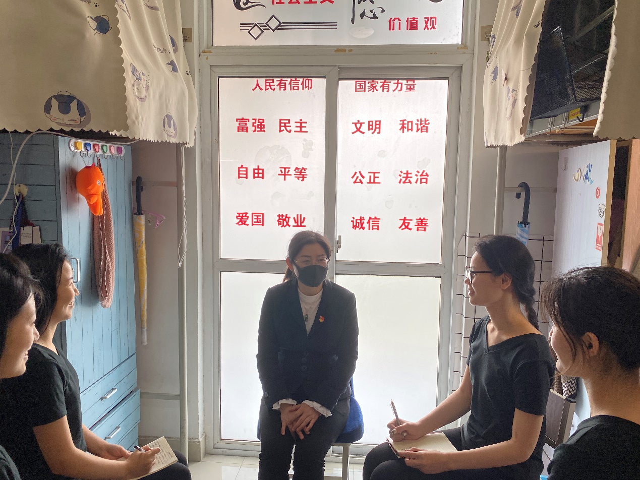 在线上各种学习如火如荼开展的同时,各二级学院的老师们还深入到学生当中,和同学们一起话“安全”、议“安全”。在人文艺术学院,党总支副书记夏梦带领专职辅导员们进入学生公寓,为同学们答疑解惑,现场宣讲国家安全的重要性。