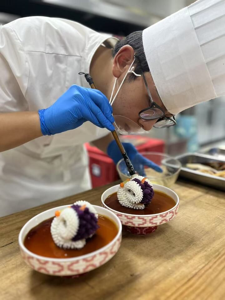 团队在2025世界职业院校技能大赛总决赛中的获奖项目——“基于‘四新’理念的《金榜题名宴》菜品研发与实践”,也有了新进展。“我们将这个项目融入校企合作。目前,合作企业的月销售额已经提升了68万元,增幅达到 24.8%,同时人工成本降低30%。团队获专利受理4项、著作权4项及6项国内外荣誉。”孙迁清介绍。