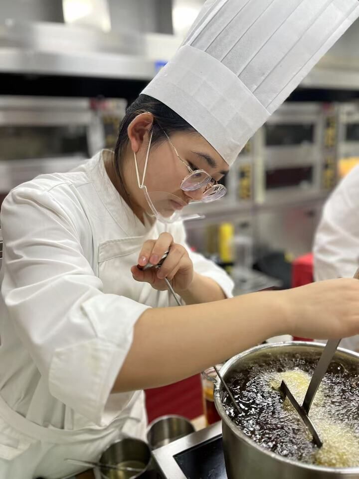谈及参加两场比赛的经历,在邹倩倩看来是不断提升自己的过程。“我记得参加世界职业院校技能大赛的时候,要求我们参赛者一边做菜一边讲述自己的创意和想法。这种边做边讲的方式一开始对我来说是有难度的。但经过专业训练后,我的思维逻辑更清晰,表达能力也有所增强。”