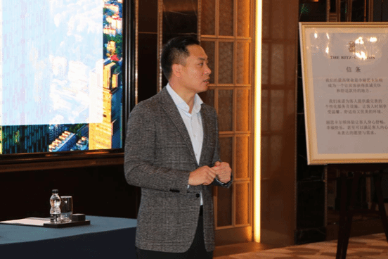 仪式伊始,南京丽思卡尔顿酒店总经理王世峰发表致辞。他从天赋、激情与机遇三个维度,系统阐释了优秀酒店人的成长路径,勉励“丽思班”学子以初心赴热爱,将个人特质与行业需求深度融合,在丽思卡尔顿的专业平台上锤炼本领、逐光成长。王世峰强调,丽思卡尔顿“以绅士淑女的态度为绅士淑女服务”的品牌文化,不仅是标准化的服务准则,更承载着对职业精神与个体价值的双重尊重。他期待同学们将这一文化内化于心、外化于行,在未来职业道路上绽放光彩。