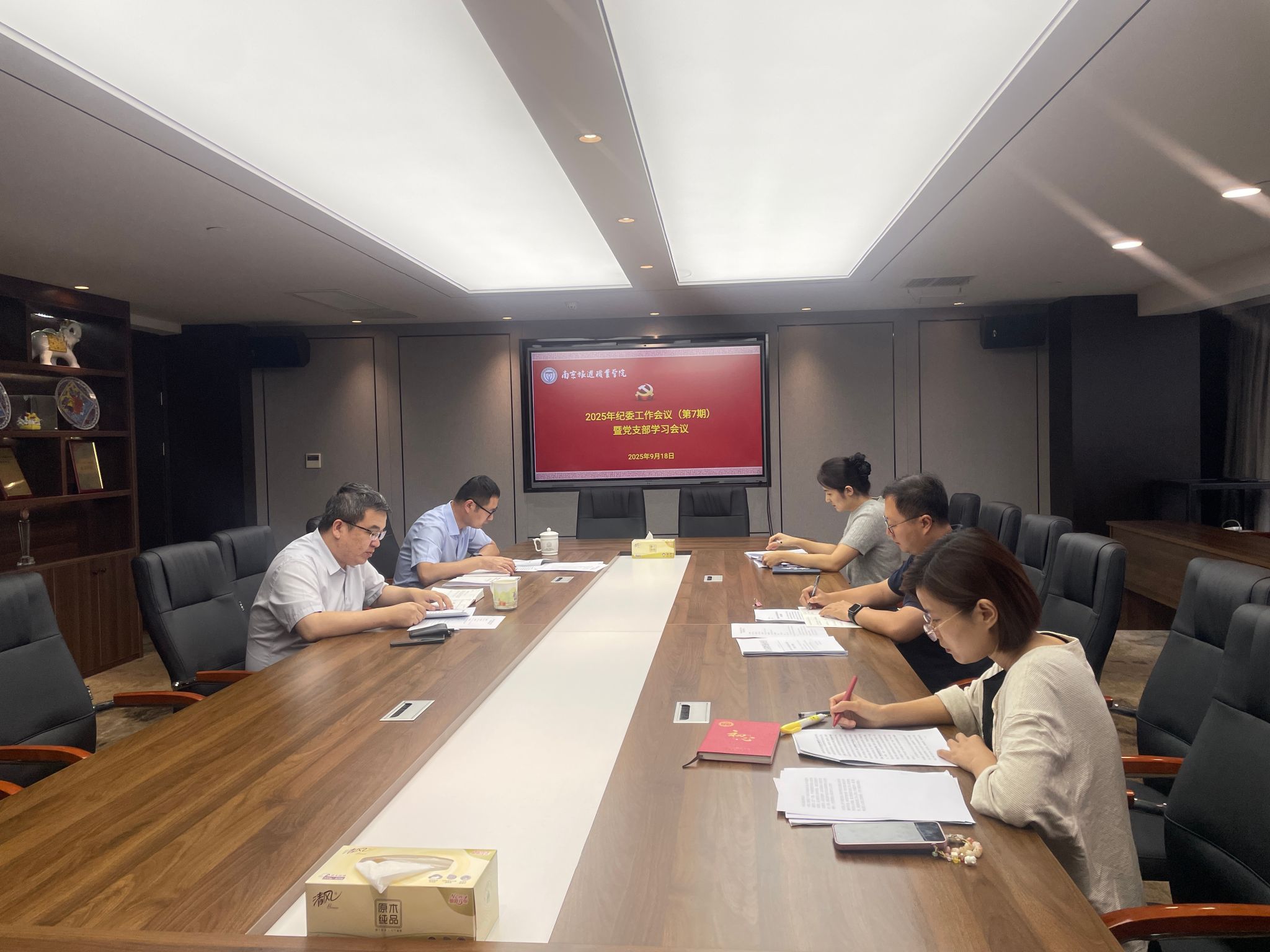 会议学习了习近平总书记在《求是》杂志发表的重要文章《弘扬伟大抗战精神,向着中华民族伟大复兴的光辉彼岸奋勇前进》,学习了省纪委书记张忠同志在全省高校系统警示教育会议上的讲话以及在省“三化”建设年推进会上的讲话。会议集中研讨了《锻造政治过硬能力过硬作风过硬江苏纪检监察铁军工作指南(征求意见稿)》《省纪委2025年考核实施方案》以及“四强党支部”建设工作。