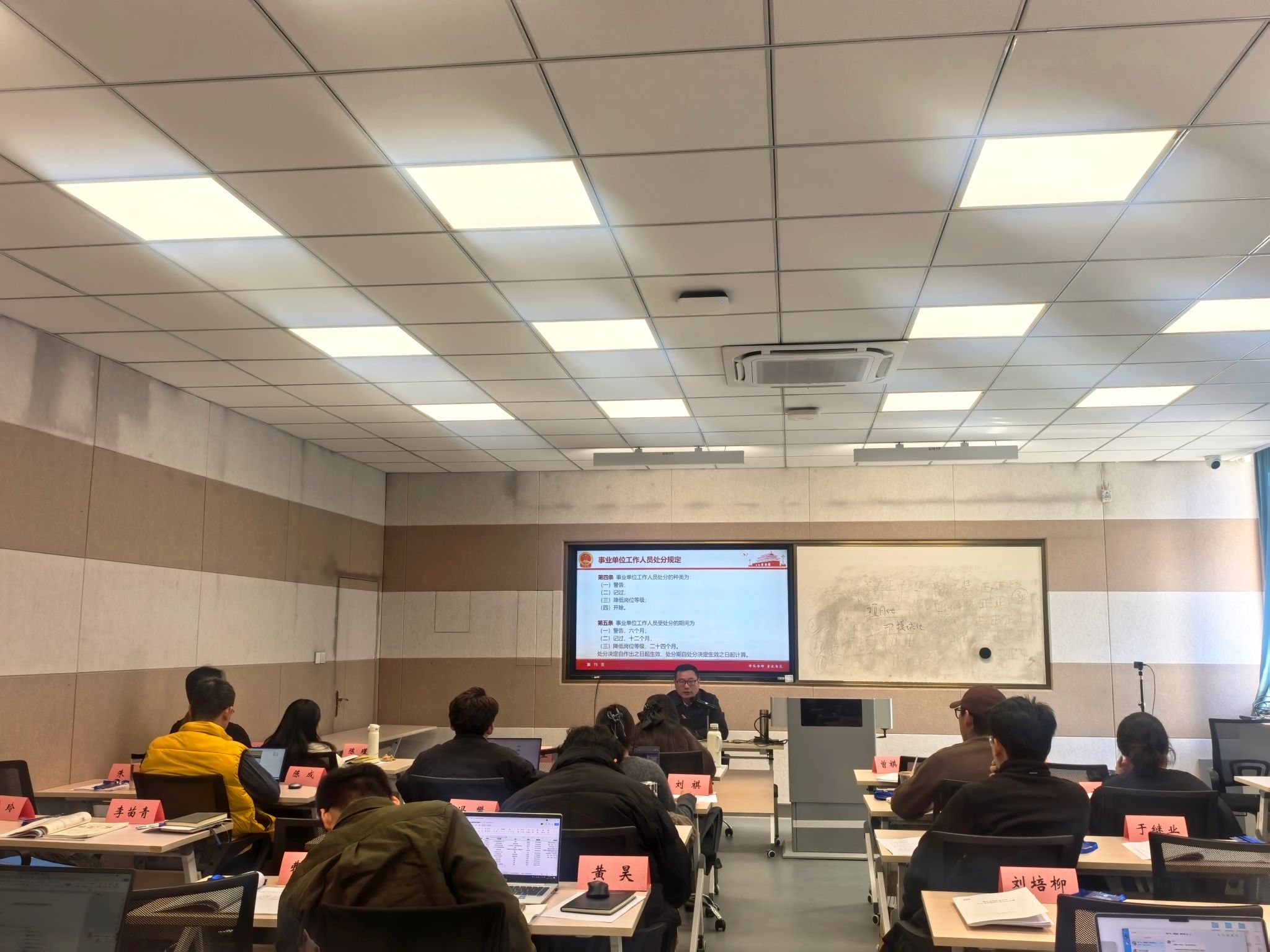 报告介绍了纪检监察机构职责,强调师德师风是教师评价第一标准。主讲人带领深入学习习近平总书记重要讲话精神及教育部文件,结合高校领域常发易发的学术不端、不当言论、师生关系失范等典型案例27个,系统解读《新时代高校教师职业行为十项准则》《中国共产党纪律处分条例》《事业单位工作人员处分规定》核心条款,以案明纪、以案示警。