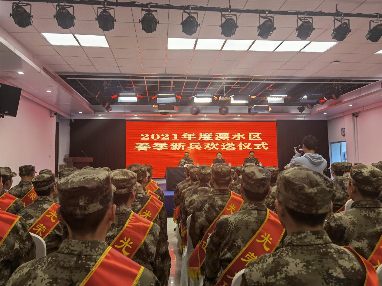 圆军梦,送新兵,踏征程,行军旅。3月15日下午,溧水区人民政府举行了2021年度春季新兵入伍欢送仪式,我们12名新入伍大学生及家长参加了欢送会。会上,进行了入伍新兵命令宣布、入伍新兵宣誓、佩戴光荣花、新兵代表表决心、...