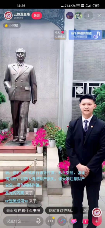 5月29日下午2:30,献礼建党百年,长三角红色文化景观进社区系列活动——红色文化传播和红色景观讲解南旅院分会场活动在中共代表团梅园新村纪念馆如期开展。我们招就处姚颖副处长、203旅游管理5班陈海涛同学、193旅游管理5班沈艺同学代表学院通过抖音平台进行主题为“...